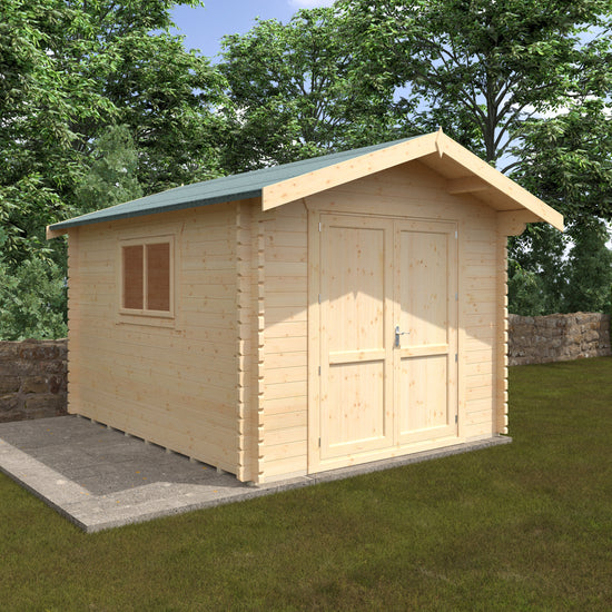 Available in a range of sizes from 8×8ft to 14×10ft, The Buttercup Apex Roof Log Cabin can be tailored to your garden and requirements. Whether you’re creating a secure workspace or a traditional garden storage solution, every model delivers the same high-quality construction and finish.
